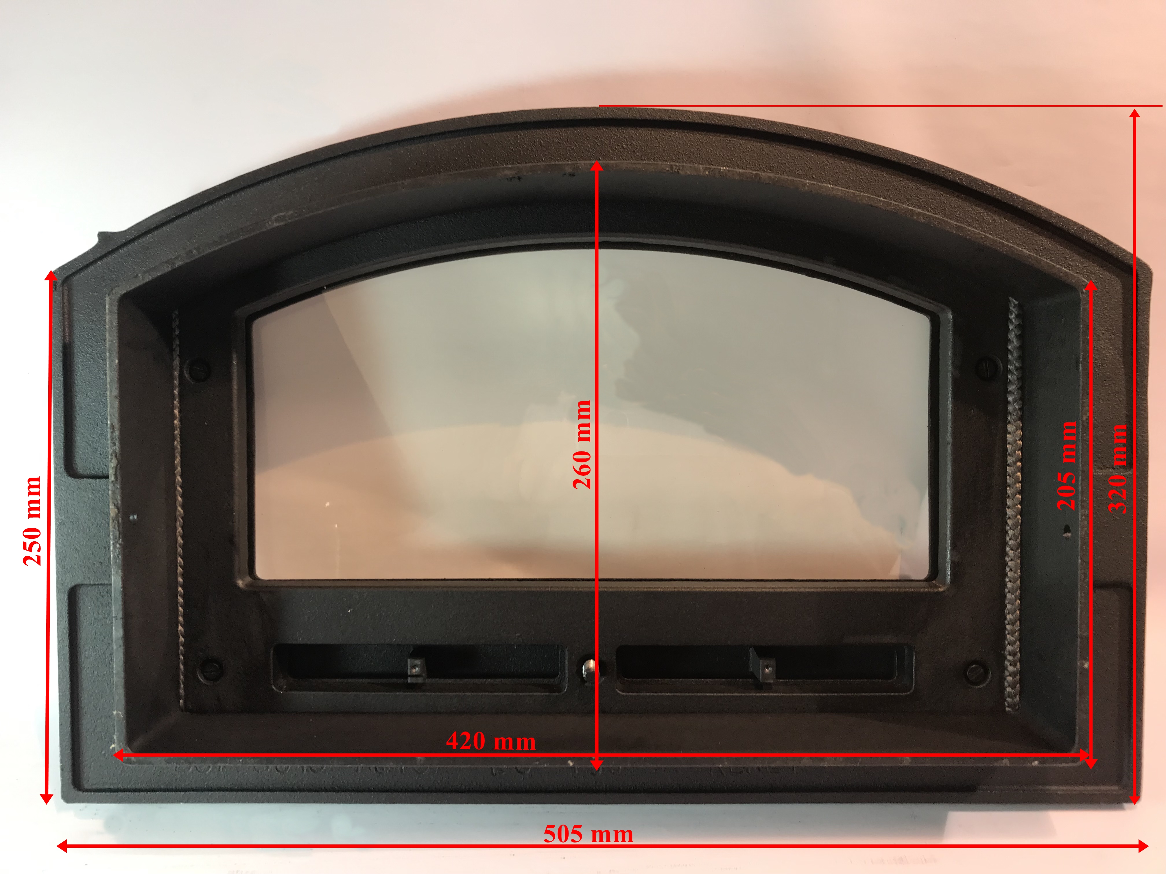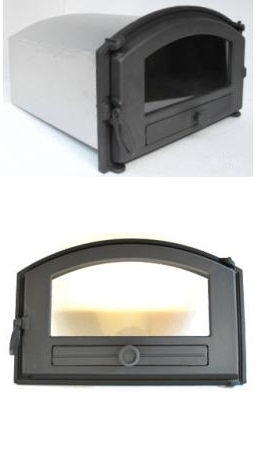 Íves sütőajtó Kérhető 40 cm-es dobbal (a dob mérete tetszés szerint variálható, lehet saválló anyagból) Az összes fekete öntvény kilincses ajtónkhoz ajánlható stílusban